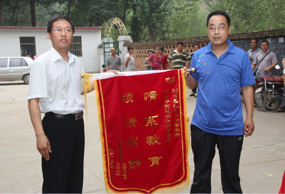 同學(xué)們穿上了嶄新的校服 收到石湖小學(xué)贈送的錦旗