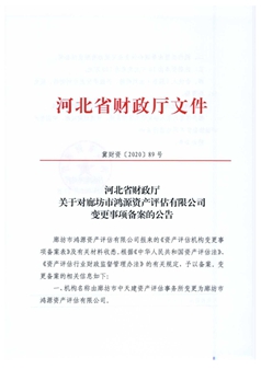 廊坊市鴻源資產評估有限公司變更公告 -