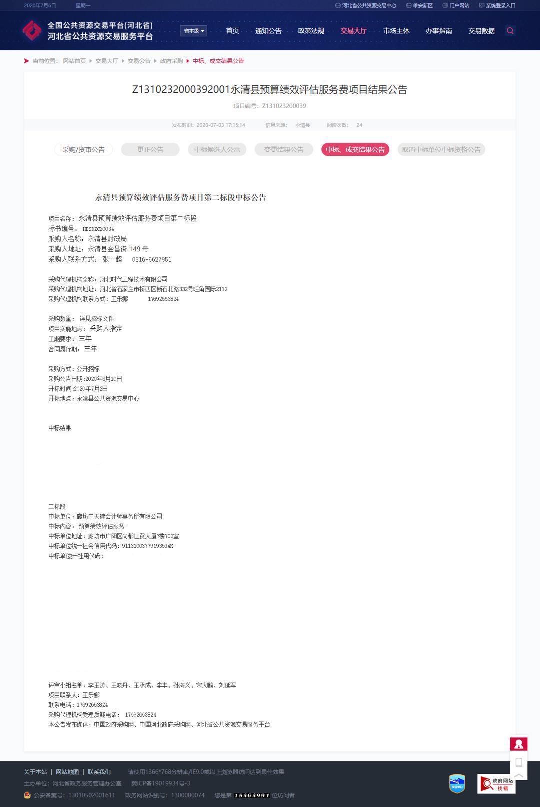 我公司中標(biāo)永清縣財(cái)政局預(yù)算績(jī)效評(píng)估服務(wù)費(fèi)項(xiàng)目第二標(biāo)段
