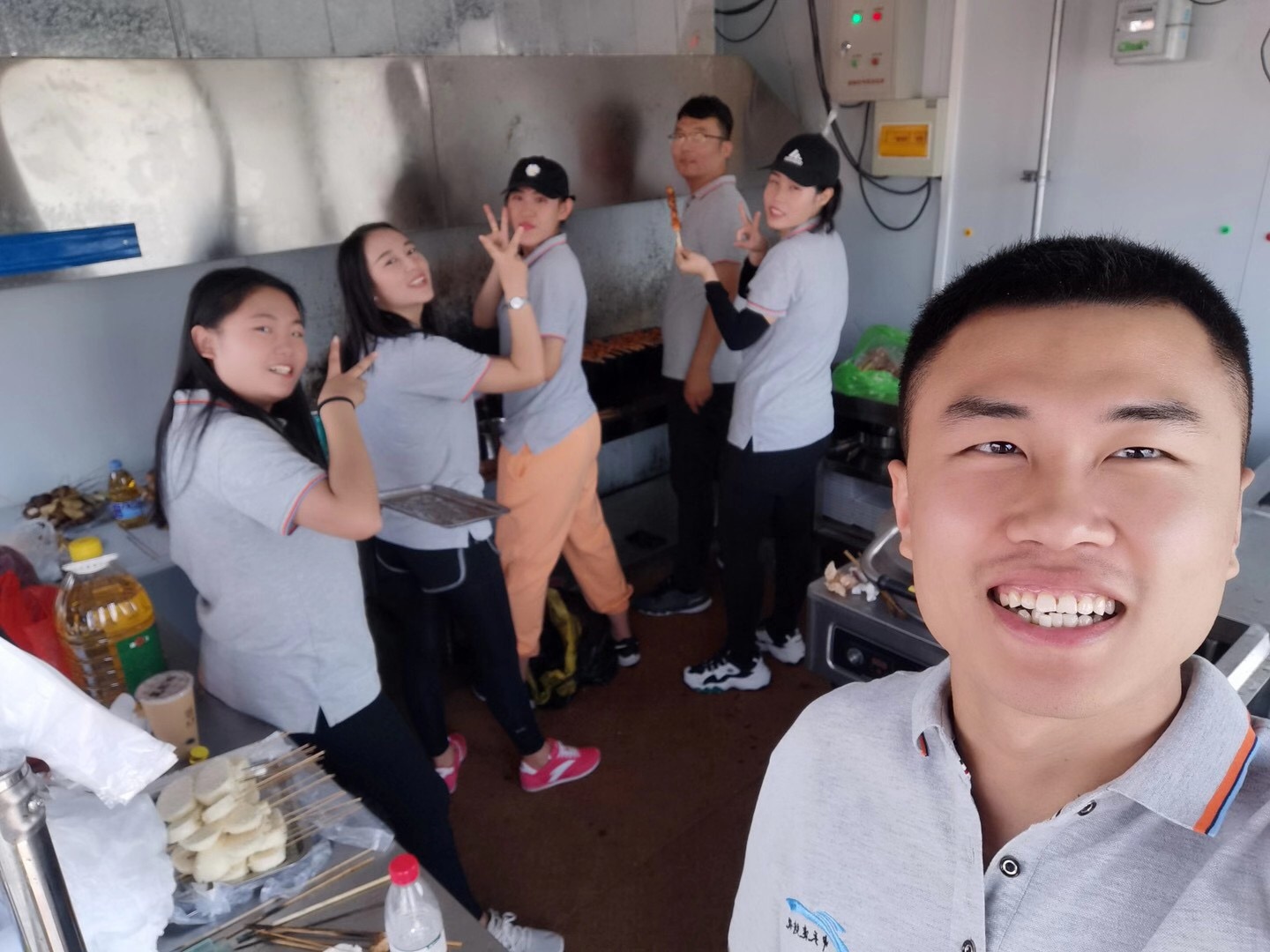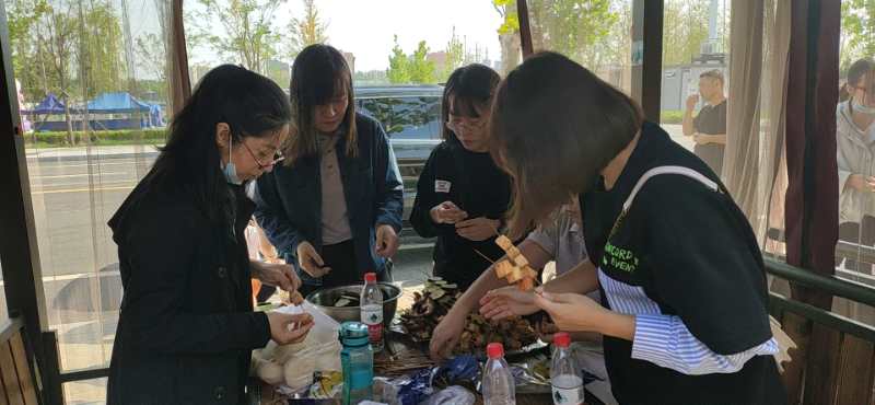 到達(dá)御龍河公園大家整齊的停好自行車(chē)后,大家開(kāi)始準(zhǔn)備午餐。男同事負(fù)責(zé)生火、燒炭,為接下來(lái)的燒烤大餐做準(zhǔn)備,女同事負(fù)責(zé)擇菜、洗菜、穿串,整個(gè)公園都是我們的歡聲笑語(yǔ)。